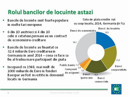 “Economisirea si creditarea in sistem colectiv pentru domeniul locativ in Europa: o poveste de succes” 09.12.2015 0 1499 Numarul clientilor care beneficiaza de economisirea si creditarea in sistem colectiv pentru domeniul locativ din Romania (cunoscut si sub denumirea de sistem BAUSPAR) este cu mult mai mic decat in cazul altor tari europene, astfel incat este deosebit de important ca prima de stat pentru economisire-creditare sa sustina sistemul BAUSPAR pentru ca acesta sa ajunga la maturitate si pentru a se dezvolta, asa cum s-a intamplat in celelalte tari europene, a declarat Andreas J. Zehnder, Director Executiv al Federatiei Europene al Bancilor pentru Locuinte si Presedinte al Uniunii Internationale pentru Finantarea Locuitului. Principiile fundamentale ale sistemului de economisire-creditare sunt simple. Intai clientul BAUSPAR economiseste, apoi banca acorda credite pentru domeniul locativ din fondul economisit acelor clienti care isi doresc acest lucru si care sunt eligibili. "Practica standard este aceea ca pentru a obtine prima de stat pentru domeniul locativ nu exista criterii de eligibilitate – fiecare cetatean, indiferent de varsta, are dreptul la prima pentru depunerile sale pentru domeniul locativ. Principul de baza al unui contract de economisire-creditare este acela ca leaga etapa de economisire cu dreptul de a primi un credit pentru domeniul locativ. Clientul are dreptul sa faca imprumutul, insa nu este obligat. Sistemele BAUSPAR din Europa sunt proiectate pentru a oferi o finantare de termen lung pentru domeniul locativ. Cu toate acestea, din moment ce se bazeaza in mod exclusiv pe resurse colective, adica pe economiile tuturor celor care au un contract de economisire-creditare si economisesc, suma totala a creditelor nu poate depasi, prin definitie, suma economiilor si amortizarea imprumuturilor pentru orice perioada data. Prin urmare, este la fel de importanta atragerea persoanelor care economisesc pentru domeniul locativ si care decid sa nu faca un imprumut BAUSPAR. Daca sistemul BAUSPAR are suficienti clienti care economisesc pentru domeniul locativ, ii creste vizibilitatea si ii permite sa ofere produse de credit atragatoare. Prima de stat pentru locuinte trebuie privita in acest context. O prima de stat atractiva din partea statului, care sa nu fie supusa unor reguli restrictive si distinctive, atrage un segment mai mare din populatie catre sistemul BAUSPAR si implicit catre investitii in domeniul locativ", a precizat Andreas J. Zehnder. "Decizia de a lua credit ramane intotdeauna la latitudinea clientului. Nimeni nu te poate obliga sa iei un imprumut daca nu vrei unul. Cred ca cel mai important aspect al sistemului BAUSPAR este faptul ca multe persoane contribuie prin economisire la dezvoltarea sistemului, astfel incat sistemul BAUSPAR poate fi privit ca o pusculita in care multi strang bani pentru domeniul locativ. Deci se formeaza un fond cu scopul de a sustine investitiile in locuit. Aceasta este important pentru intelegerea modului de functionare a bancilor de locuinte, nu faptul daca toti clientii obtin un credit, ceea ce este imposibil de realizat. Important este sa existe fonduri suficiente pentru aceia care vor sa investeasca in domeniul locativ – modernizare, constructie, cumparare etc. Acesta este aspectul principal. Asa functioneaza economisirea-creditarea in sistem colectiv si bancile pentru locuinte. In toate tarile, economisirea-creditarea in sistem colectiv pentru domeniul locativ este sustinuta de stat prin prime de stat. Astfel, statul incurajeaza oamenii sa faca economii pe termen lung si sa investeasca in domeniul locativ. Este un semnal important din partea statului catre populatie. Rezultatele acestor masuri ale statului sunt cele pe care le puteti vedea in Germania, Austria, Franta. Sa incurajam oamenii sa-si construiasca propriile case, sa investeasca in domeniul locativ. Aceasta este util si pentru stat, deoarece daca oamenii investesc in propriile locuinte, guvernul nu trebuie sa mai fie preocupat de situatia lor locativa. Am realizat un sondaj prin intermediul biroului nostru de audit general acum 2-3 ani care a relevat ca, chiar si fara conditionarea de a folosi fondurile in scopul imbunatatirii locative, 95% din totalul clientilor foloseau acesti bani in scopuri locative", a adaugat Andreas J. Zehnder. Un sistem BAUSPAR bine inradacinat contribuie la stabilitatea economica datorita modelului de functionare anti-ciclic. Functia de stabilizare a acestui model s-a demonstrat din nou in cadrul crizei financiare mondiale din 2007 - 2008. In timp ce alti creditori erau ingrijorati cu privire la lipsa de fonduri sau de problemele privind creditele in alta valuta, bancile de locuinte au putut oferi credite clientilor. In Europa bancile de locuinte si economisirea-creditarea reprezinta un element important al sistemului financiar. Economiile emergente sunt, astfel, bine sfatuite daca sustin dezvoltarea si extinderea economisirii-creditarii pentru domeniul locativ. Toate segmentele de populatie, fara diferentiere de varsta si cu precadere pentru populatia cu venituri mai mici sunt sprijinite de stat prin prima de stat. In Germania, sistemul de economisire-creditare (Bauspar) are o experienta de peste 80 de ani."Bancile pentru locuinte din Germania (de exemplu), unde exista o populatie de 80 milioane, gestioneaza aproximativ 30 milioane de contracte BAUSPAR cu o valoare de aproximativ 865 miliarde EURO, avand o cota de piata de 19,5%. Fondurile BAUSPAR sunt din punct de vedere al importantei a treia sursa de finantare pentru locuinte din Germania. Incepand din 1984, in Germania din fondurile BAUSPAR au fost construite peste 13 milioane de locuinte. In Austria, cinci din zece austrieci detin un contract de tip BAUSPAR, iar in Republica Ceha, patru din zece. Aceste cote impresionante arata cat de populare sunt bancile pentru locuinte si in zilele noastre. Motivul initial care a stat la baza introducerii primei de stat pentru depuneri pentr