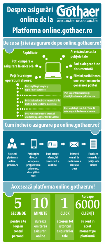 Asigurarile online de la Gothaer, o alegere optima la indemana tuturor 12.10.2016 0 1478 Asigurari pe care sa le incheiem rapid si simplu, de preferat online? Da! Gothaer Asigurari Reasigurari pune la dispozitia clientilor sai platforma online.gothaer.ro care permite achizitionarea politelor de asigurari doar la un click distanta, oricand, din confortul casei, de la serviciu sau de oriunde exista acces la internet. Pe aceasta platforma, clientii Gothaer isi pot administra politele de asigurare si gestiona eficient ratele politelor active, avand practic, la indemana, 24/7, intreaga arhiva a politelor lor de asigurare incheiate online. Care sunt avantajele clientilor care aleg sa foloseasca platforma online.gothaer.ro? Alegerea si emiterea unei asigurari pe platforma Gothaer este usoara si intuitiva. Dupa crearea contului pe platforma online.gothaer.ro (care dureaza 5 secunde, prin introducerea e-mailului si a parolei), clientii primesc un e-mail de confirmare a contului nou creat, dupa care se pot loga in platforma online ori de cate ori doresc. Prin intermediul contului lor, clientii pot emite singuri politele de asigurare de la Gothaer. Platile sunt securizate si se pot efectua cu cardul bancar, avand totodata la indemana si optiunea platii in rate a politelor de asigurare. Platforma online.gothaer.ro pune la dispozitia utilizatorilor sai multiple functionalitati. Prin intermediul ei, acestia pot: obtine cotatii si calcule de pret pentru asigurarile dorite, plati online si emite (in max. 10 minute) asigurarea de care au nevoie, verifica valabilitatea asigurarii lor (incheiate online, direct sau prin intermediari), consulta contul personal prin interogarea numarului de rate si data scadenta a politelor ramase, vizualiza sau tipari politele valabile la Gothaer sau chiar si pe cele care au expirat, avand astfel la indemana o arhiva proprie a politelor de asigurare incheiate la Gothaer, din momentul crearii contului personal pe platforma online. Mai mult, au la indemana oricand Termenii si Conditiile de Asigurare aferente politelor lor incheiate la Gothaer. "Inca din momentul lansarii acestei platforme ne-am propus sa oferim clientilor nostri o experienta online utila si memorabila, accesibilitate rapida si simpla in vederea gestionarii propriilor polite de asigurare – oricand, de oriunde si in siguranta. De aceea, constant cautam sa o imbunatatim si sa introducem noi produse de asigurare, dar si functionalitati necesare utilizatorilor nostri. Astfel, si prin acest serviciu ne dorim sa fim si mai aproape de ei", declara Arthur Rosenfeld, IT Manager Gothaer Asigurari Reasigurari. Pentru o verificare rapida, chiar si fara un cont online, clientii, dar si beneficiarii politelor Gothaer pot verifica valabilitatea acestora si conditiile de asigurare prin intermediul sectiunii Polita Ta de pe www.gothaer.ro. In acest caz, clientul sau beneficiarul mentionat in polita de la Gothaer trebuie sa aiba la indemana numarul politei respective, precum si CNP-ul alocat acesteia, sa le introduca in campurile dedicate si va avea acces imediat la informatii legate de validitatea si Termenii si Conditiile de Asigurare (pe care, bineinteles, le poate si salva/ tipari oricand isi doreste).Tot pe www.gothaer.ro clientii au la dispozitie si un Chat Online, cu asistenta imediata din partea unui specialist Gothaer sau cu raspuns in cel mai scurt timp, atunci cand mesajele sunt transmise in afara orelor de program (programul de lucru este de luni pana vineri, intre 9:00 – 17:30, cu exceptia sarbatorilor legale).Sursa: Gothaer Asigurari Reasigurari Articole similare Asigurari Subiecte relevante asigurare plata online plata cu cardul card Q & A
