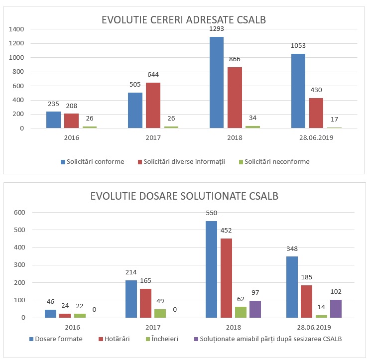 "Rezultatele CSALB pe primul semestru ne arata mai multe tendinte: in primul rand apetitul spre conciliere mult mai mare al bancilor, in comparatie cu IFN-urile. De exemplu, din 348 de dosare de conciliere constituite dupa acceptarea cererilor de catre comercianti, doar 5 dosare s-au format in relatie cu un IFN. Apoi, putem observa cresterea numarului de cereri solutionate amiabil de parti, dupa sesizarea CSALB, fara sa mai treaca prin procedura concilierii. Daca in tot anul trecut erau 97 de astfel de cazuri, in 2019 sunt peste 100 de intelegeri amiabile numai in primele sase luni. Si nu in ultimul rand, observam ca unele