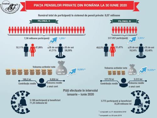 La sfarsitul lunii iunie 2020, erau inregistrati in sistemul pensiilor administrate privat 7,56 milioane de participanti, mai mult cu 1,25% fata de sfarsitul anului 2019.