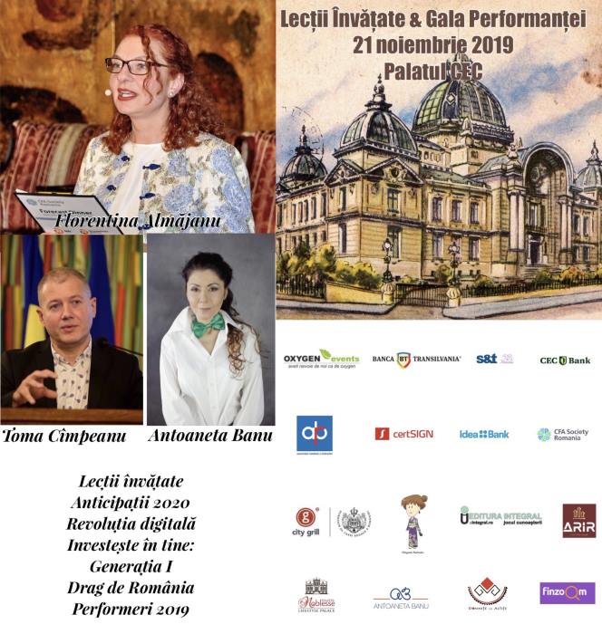 Evenimentul se inchide cu Gala Performantei pretext si context prin care pretuim si rasplatim inovatia, initiativa, implicarea sociala si temeraritatea profesionistilor intr-un mediu economic atat de provocator ca cel al Romaniei de azi. Printre invitatii nostri din acest an se numara presedintele CEC Bank Bogdan Neacsu, CEO S&T Nicoleta Macovei, profesorul Vasile Baltac, vicepresedintele Idea Bank Simina Maria Baiasu, directorul executiv certSign Costin Burdun, campioana mondiala la atletism Gabriela Szabo, performerul de top al Romaniei in alpinismul de altitudine extrema Alex Gavan, profesorul universitar Bogdan Suditu, seful grupului City Grill Daniel Mischie si ambasadoarele identitatii, autenticitatii si traditiilor romanesti Domnite cu altite iar violoncelul lui Adrian Naidin va spune povesti neuitate de Drag de Romania…