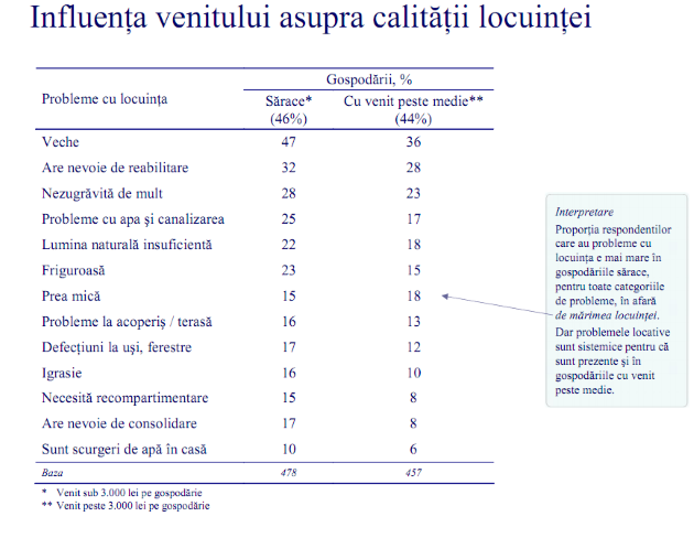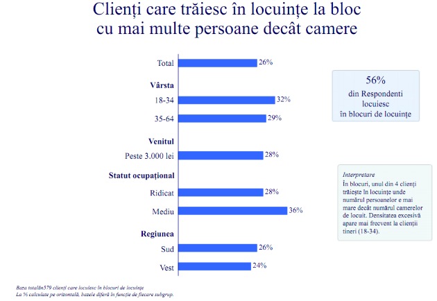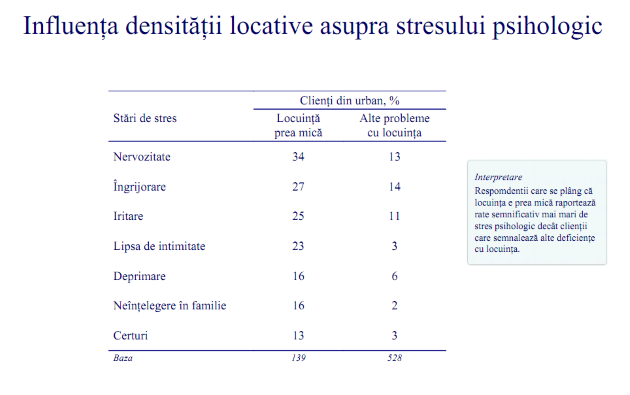 Studiu IRSOP: Datele statistice care arata ca acolo unde sunt mai multi locatari adulti decat camere de locuit, neintelegerile si certurile sunt mai frecvente 22.08.2017 1 1304 "Inghesuiala locativa e una dintre problemele cele mai dramatice cu care se confrunta romanii. Ii implica in mod special pe cei care locuiesc „la bloc”, cum se spune, si familiile numeroase cu membri care nu se pot separa pentru ca nu au venituri disponibile. Oamenii care traiesc la inghesuiala sunt mai nefericiti. Avem date care arata ca acolo unde sunt mai multi locatari adulti decat camere de locuit, neintelegerile si certurile sunt mai frecvente, iar oamenii sunt mai nervosi si mai deprimati, probabil si datorita lipsei de intimitate. Cum se odihnesc acesti oameni? Cum mananca? Unde se pregatesc pentru scoala sau pentru munca? Cum gestioneaza preferintele divergente? Cum e atmosfera generala? Putem spune ca tema densitatii excesive in locuintele romanesti lipseste cu desavarsire de pe agenda publica", a declarat dr. Petre Datculescu, Directorul IRSOP. "In blocurile de locuinte, unul din 4 clienti traieste in locuinte unde numarul persoanelor este mai mare decat numarul camerelor de locuit. Conform unei cercetari IRSOP facute pentru Asociatia Bancilor pentru Domeniul Locativ din Romania (ABDLR), se observa o densitate mai mare in randul clientilor tineri (18 – 34 ani). Exista cazuri in care, intr-un apartament de 2 sau 3 camere traiesc impreuna trei generatii", a declarat Lucian Anghel, presedintele BCR Banca pentru Locuinte. Cercetarea facuta de IRSOP a fost efectuata pe un esantion de 1.040 de clienti ai celor doua banci de economisire-creditare care au economisit timp de 5 ani, dar nu au apelat pana in prezent la un credit."Orice om care are probleme cu locuinta in care traieste se afla intr-o situatie de risc social. Studiile noastre arata ca familiile sarace, cu un venit sub media nationala a venitului pe gospodarie, au in proportie mai mare probleme locative, decat familiile cu venit peste medie. Deci, locuiesc mai rau si au si resurse mai putine de a-si imbunatati calitatea locuirii", a spus dr. Petre Datculescu. Recent, EFdeN a lansat, cu sprijinul BCR Banca Pentru Locuinte (BCR BpL), Ghidul Conditiilor de Confort, document ce are ca unic scop imbunatatirea calitatii locuirii in Romania si unde confortul este definit ca starea de buna dispozitie fizica si mentala, datorata factorilor externi, care pot fi de multiple naturi, insa satisfactia in legatura cu mediul interior este o notiune subiectiva, ce depinde de fiziologia fiecarei persoane. Se intalnesc frecvent cladiri deficitare din punct de vedere al unuia sau mai multor categorii de confort: confortul termic, calitatea aerului, confortul acustic, confortul vizual, in multe cazuri fiind vorba chiar de Sindromul Cladirilor Bolnave.Sursa: BCR Articole similare Financiar Q & A