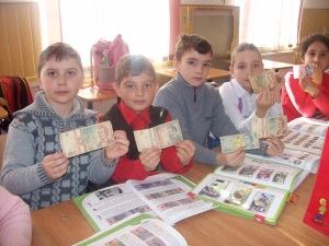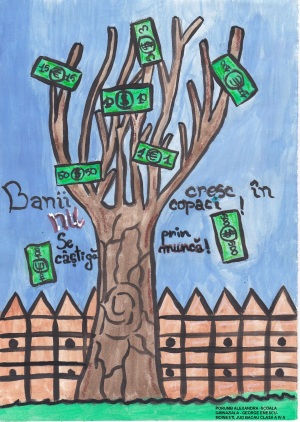Educatie Financiara - Scoala Gimnaziala George Enescu - Moinesti, Bacau 28.03.2014 2 2143 Aceiasi copii au realizat troc cu diferite produse, au colectionat bani vechi, au desenat si au scris poezii pe tema optionalului.Poezii de la copiiCe sunt banii?Intr-o zi un copil micM-a-ntrebat asa timid:-Cum de dai doar o hartieSi primesti o jucarie?-Am sa-ti spun sa intelegi:Pentru ca, cei mari muncesc,Ei primesc niste hartiiCu valori de cativa lei,Ce bancnote se numesc.Daca tot mai mult trudesc,Ce-i in plus, ei investesc.Schirliu Delia, Clasa a IVa AScoala Gimnaziala "George Enescu"Localitatea Moinesti, Judetul BacauEconomiile lui ViorelE vesel tare Viorel;De ziua lui el a primitDe la un unchi de-al luiUn dar deosebit.Unchiul i-a dat 100 leiSi i-a spus lui Viorel:- As vrea sa vad ce faciCu banii ce ti-am dat.Stiu bine ca tu vreiO bicicleta, ca sa ai,Asa ca langa banii meiAduni si tu leu cu leu.Si vei putea-ncurand,Din banii ce-ai economisit,Sa-ti cumperi bicicletaCe-atata ti-ai dorit.- Ca bine zici, unchiule dragaIti multumesc pentru sfat.Si pentru bani, bine-ntelesSi iti promit solemnCa am sa adun ban cu banSa economisesc, cum zici tu!Si in curand ma voi plimbaCu bicicleta mea!Luca Miruna Stefania , cl a IV-a AScoala Gimnaziala "George Enescu" - Moinesti - judet Bacau Subiecte relevante educatie financiar-bancara Q & A