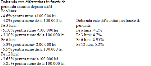 - dobânda nu mai este diferențiată în functie de sumă (acum este diferențiată în funcție de perioadă)