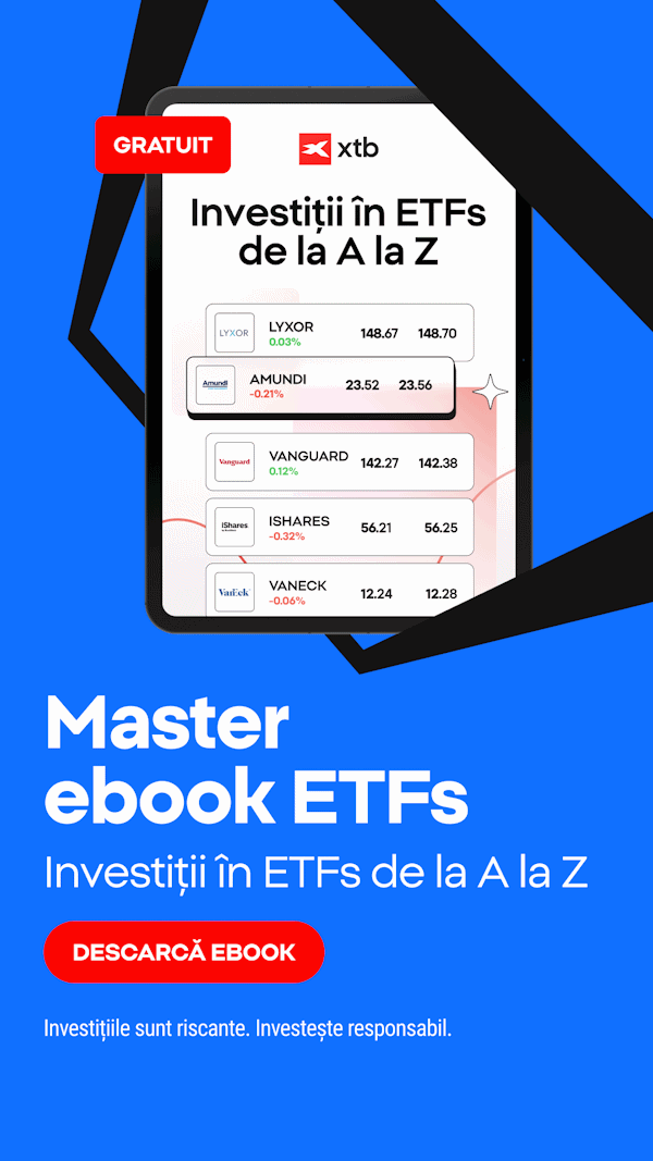 Compania de investiții XTB a lansat eBook-ul "Investiții în ETFs de la A la Z", un ghid practic și accesibil, dedicat celor care vor să înțeleagă mai bine piața ETF-urilor.
