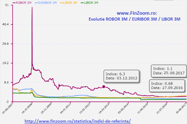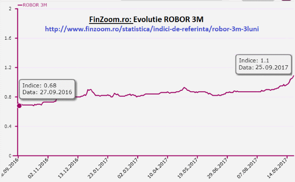 FinZoom.ro: Un nou maxim pentru indicele ROBOR. Cu cat cresc ratele la creditele in lei Autor Analistii FinZoom 25.09.2017 5 3160 Previziunile analistilor se adeveresc, romanii care au credite in lei cu dobanda variabila vor plati rate mai mari incepand chiar din toamna lui 2017.Astazi, pe 25 septembrie 2017 indicele ROBOR a inregistrat un nou maxim al ultimelor 22 de luni, ajungand la valoarea 1.1% (Robor 3M a fost 1.1 in 24 noiembrie 2015).Evolutia zilnica a Indicelui Robor 3M in ultimii 10 ani o regasiti pe www.FinZoom.ro: http://www.finzoom.ro/statistica/indici-de-referinta/robor-3m-3luni/Intr-un an, ratele la Prima Casa au crescut cu 50 lei (cu peste 5%)Facem calculul la un credit Prima Casa de 225.000 lei (50.000 euro echivalent), contractat pe 30 ani, la care dobanda este calculata ca ROBOR 3M + 2% si la care se mai adauga comisionul Fondului de Garantare (0,45% anual, calculat la valoarea garantiei - si anume 50% din soldul finantarii garantate / sau a principalului).Simulare calcul rata Septembrie 2016 vs Septembrie 2017Indice ROBOR Crestere ROBOR Rata (lei) 0,68% - 910 1,10% 0,42 pp 961 Comparativ cu aceeasi perioada a anului trecut, cresterea indicelui ROBOR a contribuit la majorarea ratei la un astfel de credit cu aproximativ 50 de lei (de la 910 la 960 lei).Previziunile se adeveresc. Cu cat vor creste ratele in urmatorii ani?Pe fondul cresterii presiunilor inflationiste dar si al dezechilibrelor macroeconomice, ratele dobanzii din piata monetara vor creste in trimestrele urmatoare, dupa o perioada in care acestea au fost la minime istorice. Daca ROBOR va ajunge la Cresterile estimate de analisti, la sfarsitul anului curent, pentru un credit Prima Casa de 50.000 euro pe 30 ani vom plati o rata de 988 de lei, iar la sfarsitul anului viitor (decembrie 2018), rata ar creste cu 164 lei (cu 18% mai mult decat in 2016) in mai putin de un an si jumatate. Septembrie 2016 Decembrie 2017 Decembrie 2018 ROBOR 3M 0,68% 1,4% (estimare) 2% (estimare) Dobanda 2,68% 3,4% 4% DAE 2,95% 3,68% 4,30% Rata lunara 910 lei 998 lei 1.074 lei Diferenta rata lunara - +88 lei (+9,7%) +164 lei (+18%) Sursa: Indicele ROBOR in crestere: rate mai mari pentru romani [VIDEO]Cu cat creste rata la credit daca indicele Robor va fi la valorile de acum 3 si 5 aniDaca ne uitam la evolutia Robor la 3 luni in ultimii 10 ani, acesta a fost si peste 3-4% acum 3 ai si peste 6% acum 5 ani, chiar aproape 50% in 2008.Simulare FinZoom.ro: Credit Prima Casa de 225.000 lei pe 30 ani)Astfel, rata la un credit Prima Casa ar putea creste cu peste 40% (la o valoare a ROBOR 3M de acum 3 ani) si la peste 80% (la o valoare a ROBOR 3M ca cele de acum 5 ani). Septembrie 2016 Februarie 2014 Decembrie 2012 ROBOR 3M 0,68% 3,76% 6,25% Dobanda 2,68% 5,76% 8,25% DAE 2,95% 6,15% 8,80% rata lunara 910 lei 1.315 lei 1.690 lei diferenta rata lunara - +405 lei (+44%) +780lei (+86%) Sursa: FinZoom.roRecomandari FinZoom.ro la indatorarea pe termen lungGanditi-va foarte bine daca aveti nevoie neaparat de un credit si daca va permiteti pe termen lung plata ratei lunare (si in conditiile in care se dubleaza rata lunara, sau aveti un loc de munca instabil) sau ce se intampla daca valoarea apartamentului va scadea sub valoarea imprumutului pe care trebuie sa-l rambursati la bancaIndatorati-va cat mai putin (maxim 20-30% din venituri)Comparati creditele ipotecare de la toate bancile in functie de DAE (dobanda anuala efectiva) - http://www.finzoom.ro/credite/ipotecare/ Apelati gratuit la un broker de credite pentru a economisi timp si bani. Va poate ajuta sa va faceti o analiza completa a posibilitatilor dvs. financiare, sa alegeti creditul care vi se potriveste si va ajuta pas cu pas pana la obtinerea acestuia de la bancaFaceti cat mai multe rambursari in avans la inceputul creditului, cu reducerea perioadei de rambursare (nu a ratei lunare) - de exemplu, daca la creditul de mai sus platim in avans 5 rate in prima luna, pastrand actuala rata lunara, putem reduce perioada de creditare cu un an (cu 12 luni)Puneti deoparte 3-5 rate intr-un cont de economii la aceeasi banca (in caz de pierdere a locului de munca sau alte situatii neprevazute, sa nu intrerupeti plata ratelor lunare) Subiecte relevante ROBOR (Romanian Interbank Offer Rate) RON (lei) rambursare anticipata rata lunara finantare perioada de creditare rambursare credit FNGCIMM (Fondul National de Garantare a Creditelor pentru Intreprinderi Mici si Mijlocii) programul Prima Casa Q & A