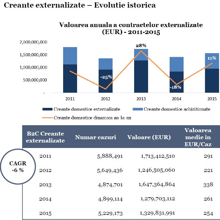 Firmele de Recuperare Datorii: Venituri in crestere cu 49% si Cod de Conduita Autor Andreea Pietrosanu 04.04.2016 1 2085 Asociatia de Management al Creantelor Comerciale (AMCC) a realizat un studiu de piata privind colectarea creantelor in 2015, studiu care a fost prezentat in cadrul conferintei de presa a AMCC din 16 martie.Veniturile din colectarea datoriilor, creantelor B2C (Business to Consumer, datorii ale persoanelor fizice) au crescut cu 49% comparativ cu anul 2014 (9.592.270 euro).Sursa: AMCCIn 2015 creantele externalizate domestic (credite vandute de institutiile de credit catre firmele de recuperare datorii) au reprezentat o cota de piata de 92%, fata de 85% in 2014.Conform spuselor celor de la AMCC, numarul creantelor domestice externalizate a crescut in 2015 cu mai mult de 7%, comparativ cu 2014, datorita unei cresteri de 16% a numarului de cazuri B2C al creantelor externalizate.Crestere cu 11% a valorii creantelor externalizateSursa: AMCCCum se colecteaza creantele?Prin intermediul corespondentei scrise, fiind principala modalitate de colectare a creantelor cat si prin intermediul e-mailului.AMCC: "Cea mai mare parte a activitatilor de colectare creante vizeaza colectarea creantelor pe segmentul B2C, care este cea mai intensiva activitate din punct de vedere al numarului de angajati, reprezentand aproape 55% din angajatii actuali. Majoritatea companiilor care fac colectare de creante B2C au departamente separate care se ocupa cu activitati specifice fiecarui segment, altele prefera sa utilizeze personalul disponibil in functie de nevoile curente.""Cea mai mare parte a activitatii se desfasoara pe segmentul B2C, implicand ~55% din totalul angajatilor. Doar 10% din totalul angajatilor sunt implicati in colectarea creantelor pe cale juridica.""Companiile de colectare a creantelor din Romania raman concentrate sa ofere solutii debitorilor in etapa de colectare a creantelor pe cale amiabila, iar corespondenta scrisa ramane cea mai utilizata metoda pentru colectarea creantelor in Romania. AMCC considera binevenita si necesara o legislatie care sa reglementeze acest domeniu de activitate" a declarat Georg Kovacs, Presedintele AMCC.Reglementari privind piata de colectare a creantelorEste o piata putin reglementata, firmele de recuperare datorii respectand voluntar o serie de reguli impuse de AMCC celor 15 membri ai sai (80% din piata de recuperare creante), printr-un Cod de Conduita (riscand excluderea din asociatie, in caz de incalcare a prevederilor Codului).In Ordonanta Autoritatii Nationale pentru Protectia Consumatorilor (ANPC) privind contractele de credit imobiliar, se adauga insa prevederi suplimentare privind recuperarea de credite: vezi detalii in articol FinZoom.ro.Codul de Conduita AMCC prevede ca:Apelurile telefonice pot fi efectuate in orice moment si in orice loc, atat timp cat nu ii vor aduce neplaceri debitorului, respectiv in zilele de lucru, intre 8:00 si 21:00 si sambata intre 9:00 si 14:00, exceptand situatiile in care debitorul solicita sa fie contactat in alt interval orar.Convorbirile trebuie desfasurate intr-un mod politicos, care sa asigure protejarea si nedivulgarea catre terti a informatiilor privind obligatiile de plata ale debitorului si datele personale ale acestuia/acesteia. Atunci cand incepe o convorbire, agentul de colectare trebuie sa se prezinte, sa comunice numele companiei pe care acesta/aceasta o reprezinta, precum si numele creditorului pentru care actioneaza. In cazul mandatelor fara reprezentare in care s-a convenit in aceasta modalitate cu creditorul, agentul colector se poate prezenta ca actionand direct in numele creditorului.In timpul convorbirii, agentul de colectare trebuie sa explice motivul convorbirii cu debitorul, precum si sa clarifice orice nelamuriri sau intrebari ale acestuia.In timpul convorbirii, agentul de colectare trebuie sa stabileasca pozitia financiara si situatia personala a debitorului si sa adune toate informatiile care ii pot permite sa ia o hotarare in privinta finalitatii colectarii si a procedurii de colectare ulterioare.Frecventa convorbirilor telefonice cu debitorul nu trebuie sa reprezinte un factor perturbator pentru acesta si nici sa ia forma unei hartuiri. Numarul maxim de apeluri este de 2 apeluri pe saptamana cu contact cu debitorul, exceptand cazul in care are loc o negociere activa cu debitorul si situatiile in care debitorul solicita sa fie contactat in alt interval orar.Practici interzise si inacceptabileIn timpul desfasurarii activitatii de colectare a creantelor, companiile de colectare a creantelor si persoanele care actioneaza in numele acestora nu trebuie sa recurga la metode care sa contravina legii sau regulilor de bunacuviinta. Se interzic urmatoarele:Utilizarea fortei, amenintarilor cu sanctiuni inexistente sau care nu pot fi consecinta a actelor/faptelor debitorului sau a altor actiuni care atenteaza la demnitatea debitorului.Utilizarea unui limbaj vulgar sau a oricaror altor termeni care atenteaza la demnitatea debitorului; utilizarea unui ton nepoliticos.Utilizarea oricaror altor metode, menite sa hartuiasca debitorul.Dezvaluirea informatiilor despre debit si despre evolutia activitatilor de colectare a creantelor unor terti neautorizati, mai ales membrilor minori ai familiei debitorului.Trimiterea sau utilizarea de documente sau scrisori care sa sugereze in mod fals ca activitatile sunt efectuate de catre o instanta judecatoreasca sau institutie a statului, sau utilizarea informatiilor caracteristice apartinand sau fiind concepute pentru astfel de institutii.Furnizarea cu intentie de informatii false privind debitul, precum a celor legate de caracterul, suma si situatia juridica a acestuia.Furnizarea de informatii false despre situatia, calificarea, experienta si atributiile profesionale ale agentului de colectare, cuprinzand in special actiuni neautorizate, in numele unei alte companii de colectare a creantelor sau furnizand informatii neadevarate despre calificarea si atributiile afere