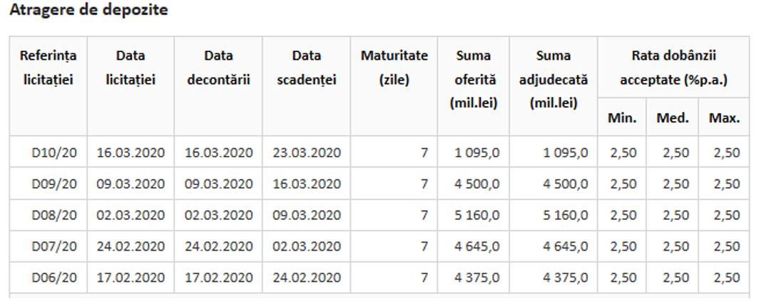 banci (pentru care BNR ofera dobanda de 2.5%, pentru 7 zile), insa suma oferita la licitatie a fost de 4 ori mai mica decat saptamanile precedente, aceasta aratand ca lichiditatea din