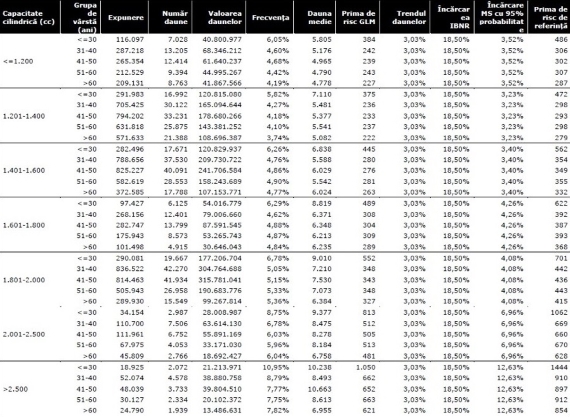 Pentru toate segmentele pietei definite in segmentarea tarifelor, s-a calculat o estimare a primei de risc ca produs dintre dauna medie si frecventa daunelor. Atat estimarea daunei medii cat si a frecventei daunelor sunt bazate pe datele istorice ale pietei RCA din Romania pentru perioada 1 iulie 2012 – 30 iunie 2017", se arata in raport.