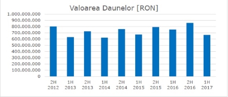Sursa: ASF - Valoarea daunelor la nivelul pietei aferente perioadei 1 iulie 2012 – 30 iunie 2017