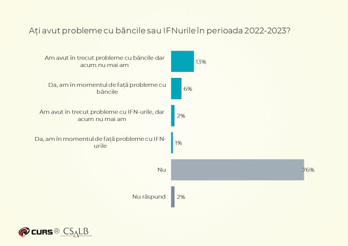 probleme în trecut cu băncile, dar acum nu mai au, iar 6% se confruntă cu