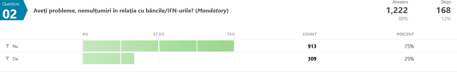25% dintre romanii integrati financiari (care au cel putin un produs financiar bancar) au raspuns insa ca intampina