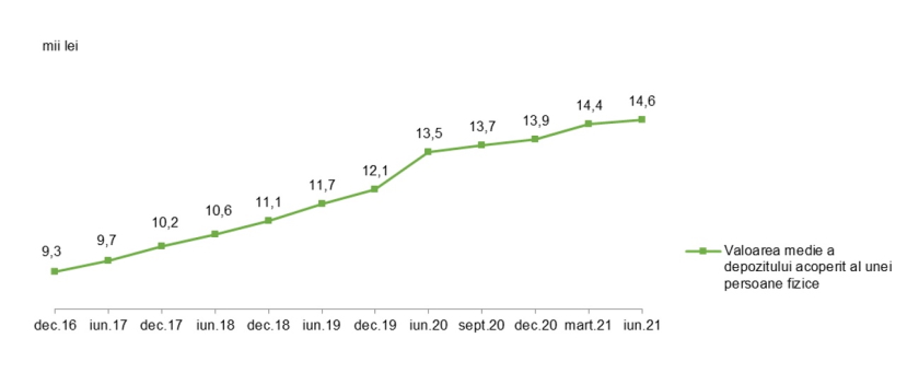 depozit acoperit a fost de 14,6 mii lei la 30 iunie 2021, în creștere trimestrială cu 1,4%.