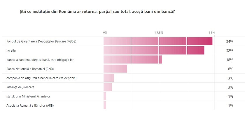 Îmbucurător este faptul că aproximativ jumătate (46%) dintre respondenți știu care este rolul FGDB și anume, să garanteze și să restituie, în limita unui plafon, banii deponenților în cazul în care banca la care sunt depuse sumele de bani nu le mai poate restitui.