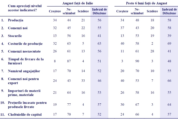 IRSOP publica Barometrul Industrial pentru august 2017 26.09.2017 0 1419 Revenire timida in industrie pe baza comenzilor interneIn luna august, industria s-a mai inviorat putin, dupa doua luni de scadere consecutiva (iunie si iulie). La sase din unsprezece indicatori ai activitatii se vad mici semne de redresare. Dar cresterile sunt destul de slabe pentru a prezice un inceput de expansiune sustenabila.Reamintim ca in fiecare luna, IRSOP si SNSPA intreaba un esantion de manageri daca in firma lor productia, comenzile, stocurile, angajarile si alti parametrii au crescut sau au scazut fata de luna precedenta. Un index bazat pe raportul net dintre raspunsuri semnaleaza expansiune daca trece de 50 de puncte si contractie daca scade sub 50.PRODUCTIAVolumul productiei a urcat de la 53 la 56 in zona de crestere (peste 50 de puncte).Stocurile au ramas mici si au atins cel mai coborat nivel de contractie din ultimele 7 luni (41 de puncte). Volumul redus si stagnant al stocurilor sugereaza ca productia nu reuseste sa le umple, iar vanzarile sunt relativ plafonate.CEREREAComenzile noi au urcat usor de la 53 de puncte in iulie, la 55 in august. Cresterea este destul de slaba si pare a fi bazata mai mult pe cererea interna decat pe export, dupa cum vom vedea imediat in paragraful urmator.Comenzile pentru export au coborat in august la 46 de puncte, sub scorul din iulie (48). Este prima data cand comenzile externe se contracta doua luni la rand (iulie si august). Importurile de materii prime au continuat si ele sa scada de la 66 de puncte in mai, la 56 in iulie si la 53 in august, in mare masura pe fondul contractarii comenzilor la export.FORTA DE MUNCAIndicatorul care masoara rata de ocupare a crescut de la 47 in iulie la 52 in august, dar cresterea provine de la circa o treime din firme, in timp ce 70% din manageri raporteaza un nivel neschimbat al numarului de angajati.COSTURI SI VENITURICosturile de productie au urcat de la 58 de puncte in iulie, la 63 in august. Saltul apare mai viguros decat cresterea volumului productiei. Probabil ca marirea costurilor nu vine numai de la cresterea productiei ci si de la preturile mai mari ale unor materii prime.Preturile incasate de firme pentru produsele vandute se afla la 57 de puncte fata de 56 in iulie, in conditiile in care 77% din firme raporteaza preturi neschimbate. Se observa asimetria dintre cresterea costurilor de productie si imobilitatea preturilor de desfacere.INVESTITIICheltuielile de capital se mentin la limita dintre crestere si contractie (52 in august fata de 51 in iulie). Practic, in domeniul investitiilor din fondurile proprii ale firmelor nu se vede nici o inviorare, de 34 de luni de cand dateaza masuratorile lunare ale Barometrului Industrial.ASTEPTARILEIndexul de optimism a mai scazut putin in august, (60 de puncte fata de 61 in iulie si 59 in iunie), semn ca mica revenire din august nu a reusit sa alimenteze sperantele pozitive ale firmelor. Indexul este compus din agregarea asteptarilor separate privind cererea, productia si incasarile viitoare ale managerilor. O privire detaliata arata ca singurul domeniu in care managerii se asteapta la o schimbare semnificativa este costul de productie. Impresia ca peste 6 luni costurile de productie vor fi mai mari a crescut de la 63 de puncte in iulie la 69 in august. Acest indicator va trebui urmarit cu atentie in masuratorile viitoare.Datele lunii august 2017Note:(1) Indexul de Difuziune reprezinta jumatate din procentul celor care spun ca situatia e neschimbata, plus cei care raporteaza o crestere.Valori peste 50 semnaleaza un proces de expansiune, in timp ce un index sub 50 semnaleaza o contractie.(2) La indicatorii 1, 2, 3, 7, 8, 9, 10, 11 un index mare peste 50 arata o crestere dezirabila. La indicatorii 4, 5, 6 un index mare peste 50 arata o crestere indezirabila. Aici cu cat indexul e mai mic cu atat situatia e mai buna.(3) Procentele insumate nu totalizeaza in toate cazurile 100 din cauza non-raspunsurilor din partea unor respondenti.(4) Toate cifrele reprezinta procente.Sursa: IRSOP Articole similare Economie Subiecte relevante clienti firma nou infiintata firme investitii venit investitori Q & A