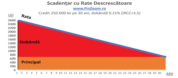 Scadențar cu rate egale versus scadențar cu rate descrescătoare (cu principal egal) [VIDEO] Autor Irina Chitu 16.05.2023 0 7804 ANPC a amendat 11 bănci pentru practici comerciale înșelătoare săvârșite de acestea cu privire la modul de calcul al ratelor, la creditele pe termen lung. Pentru faptul că, pe graficul de rambursare, ”rata era compusă, în primii ani, 25% din soldul principal de rambursat și 75% dobândă. Prin aceasta modalitate de calcul, consumatorii plăteau, de fapt, preponderent dobândă”.Și, pe lângă amenda de 550.000 lei acordată celor 11 bănci, ANPC a propus ”măsura de emitere a unor noi grafice de rambursare, atât pentru creditele aflate în curs, cât și pentru cele viitoare, unde principalul creditului datorat să fie achitat de către consumatori în rate egale, pe întreaga perioadă de creditare, în raport cu dobânda aferentă creditului.”Practic ANPC propune ca toate creditele să aibă scadențar cu rate descrescătoare, în loc de rate egale. Sursa video: EuronewsScadențar cu rate egale vs. scadențar cu rate descrescătoarePe orice scadențar (grafic de rambursare) la un credit, rata este formată din principal (parte din suma împrumutată) și dobândă (și eventuale comisioane, asigurări). 1. Scadențarul cu rate egale presupune că întreaga datorie, cu tot cu dobânzi, se împarte în rate egale în fiecare lună. Dar, la creditul pe termen lung cu rate egale, primele rate sunt formate din peste 75% dobândă și 25% principal (cât rambursezi din creditul împrumutat), după care proporția se inversează în timp, astfel că la sfârșit rata e formată mai mult din principal, iar dobânda este foarte mică. 2. Scadențarul cu rate descrescătoare se întâlnește la creditele cu opțiunea de plată cu principal egal, dar rata este mai mare la început și apoi scade în timp (este din ce în ce mai mică). Cu toate acestea, ai nevoie de un venit mai mare pentru a te încadra la aceeași valoare de credit, comparativ cu ratele egale deoarece în cazul creditului cu rate descrescătoare, prima rată este mai mare, apoi scade treptat. Dar în funcție de această primă rată mai mare, se calculează gradul de îndatorare maximum permis de BNR (de maximum 40% din venituri - la creditele în lei și 20% - la creditele in valută).Ce spun legile de protecție a consumatorilor?Conform OUG 50/2010, consumatorii pot să aleagă la acordarea unui credit, varianta de grafic de rambursare (scadențar) cu rate egale sau cu rate descrescătoare (cu principal egal). Mulți nu știu, iar băncile nu se înghesuie să le ofere credite cu rate descrescătoare, care sunt mult mai avantajoase din punct de vedere al costurilor totale, pentru consumator. Toate băncile oferă automat scadentar cu rate egale. În sine calculul cu rate egale nu este înșelător. Este o funcție în Excel, numită PMT (care depinde de dobândă, perioadă în luni și suma împrumutată), folosită pentru toate creditele din lume. Poate fi înșelător doar faptul că banca nu a făcut fiecărui consumator o simulare și cu rate descrescătoare, ca acesta să poată lua decizia în cunoștință de cauză.Astfel, în loc să impună un anumit tip de scadențar, ANPC ar putea să impună transparență. La acordarea creditului și apoi oricând pe parcurs, fiecare consumator să decidă cum vrea să ramburseze creditul. Banca doar să fie obligată să ofere simulare pentru ambele variante de scadențare, dar decizia să fie a consumatorului.Pentru creditele deja acordate, nu toți consumatorii se încadrează la un credit cu rate descrescătoare. Doar dacă venitul le permite și pot plăti o rată mai mare decât acum (o rată mai mare inițial) sau, dacă vor să păstreze rata de acum, vor trebui să crescă perioada creditului.Astfel, pentru consumator este mai benefic să apeleze la un scadențar cu rate descrescătoare, fiindcă plătește pe total mai puține dobânzi la bancă, dar trebuie să îi permită venitul să se încadreze la o rată inițială mai mare.Avantaje și dezavantaje rate egale sau descrescătoare1. În cazul creditelor cu rate descrescătoare (+) la finalul perioadei de creditare vei plăti mai puține dobânzi și comisioane băncii / Este potrivit pentru cei care vor sa economisească bani pe termen lung(-) rata lunară inițială este mai mare, implicit venitul tău va trebui să fie mai mare pentru a te putea încadra financiar la creditul dorit2. În cazul creditelor cu rate egale (+) te încadrezi cu același venit la un credit de valoare mai mare (deoarece prima rată se ia în considerare în calculul de eligibilitate, prima rată care este mai mică decât în cazul creditului cu rate descrescătoare)(-) ajungi să plătești dobânzi și comisioane substanțiale, la începutul creditului dai înapoi puțin din ceea ce ai împrumutat, mai mult plătești dobânziStudiu de caz FinZoom.ro – Scadențar cu rate egale vs, Scadențar cu rate descrescătoareDe exemplu, credit de: 250.000 lei / 30 ani (dobânda= 9,21%)Sursa: Calculator Credit FinZoom.ro, unde la Tip Scadențar se alege: Rate egale sau Rate descrescătoare https://www.finzoom.ro/calculatoare/calculator-credite Astfel, la creditul cu rate descrescătoare, prima rată este mai mare cu 564 lei (dar ultima rată este mai mică cu 1.348 lei), iar dobânda plătită este mai mică cu peste 141.458 lei. Articole similare Credite Video Subiecte relevante ANPC (Autoritatea Nationala pentru Protectia Consumatorului) clienti dobanda credit scadentar Q & A