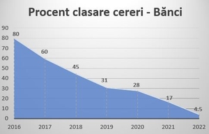 . Este cel mai mic procent de clasare din cei 7 ani de activitate ai Centrului. Acest lucru arată apetitul crescut al băncilor în a veni cu soluții la problemele consumatorilor. În plus, se demonstrează că băncile au înțeles utilitatea și eficiența concilierii vs rezolvarea nemulțumirilor prin intermediul instanței. Principalele motive de clasare a cererilor de către